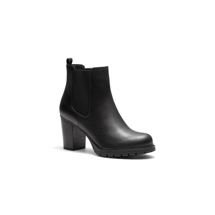 We’ve modernized our basic gusset boot with this sleek KRISTLE ankle boot, This style features comfortable block heel and trendy lug sole, complete with double side elastic for a custom fit and leather look finish. Wear it with a skirt or denim and comfortable from brunch to a night out. Synthetic Upper, Lining and Outsole. Heel Height: 7.5cm