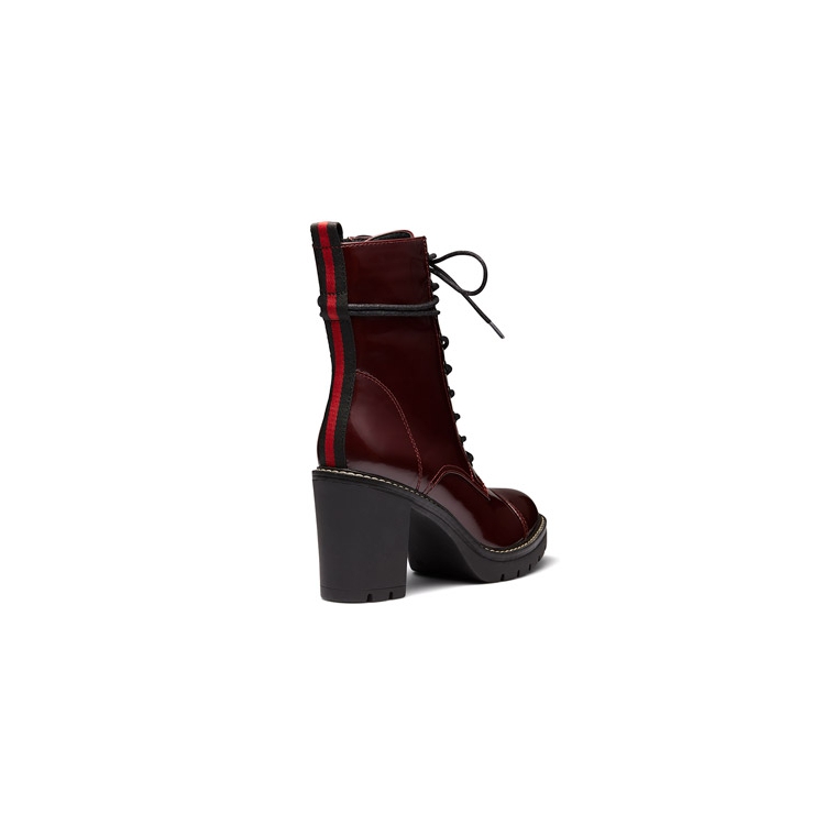Tough and unbearably cool, Halsey will have you walking with swagger. These combat boots, feature a shiny upper, block heel and lace up design. Synthetic Upper, Lining and Outsole. Heel Height: 8cm