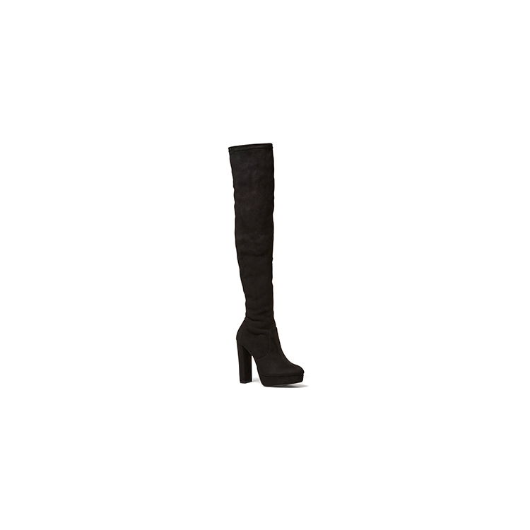 Optimistic is a bold, head turning statement. These over-the-knee platform boots mean business, featuring a high block heel and stabilizing platform for sneaky comfort and killer style. Synthetic Upper, Lining and Outsole. Heel Height: 12cm. Thigh to Ankle Height: 47cm. Calf circumference: 28cm