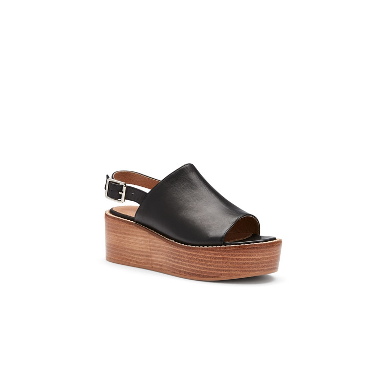 The must-have Mora platform is a fresh take on a retro favourite. Comfortable and chic, the platform sandal has a wooden platform sole and a leather covered upper over the mid-foot. A smooth leather ankle strap secures the foot and fastens with a large silver buckle. Choose from woven raffia or plain smooth-grain leather. Leather Upper, Lining and Synthetic Outsole. Platform Height: 4cm. Heel Height: 6cm